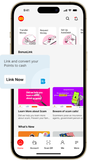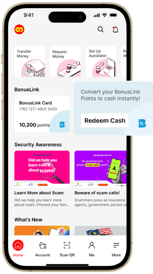 You can view your BonusLink Points easily or convert BonusLink Points into cash by tapping ‘Redeem Cash’.