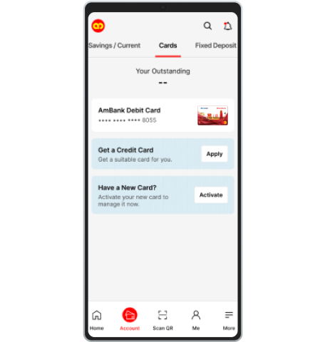 - Visit your nearest AmBank branch and bring along your existing AmBank Debit Card and identification document.