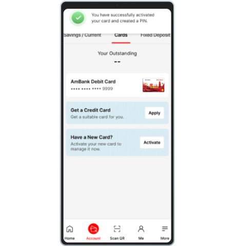 - Download AmOnline App and Open an Account with us, your new AmBank Mastercard Debit Card will be delivered to you in 7 working days.