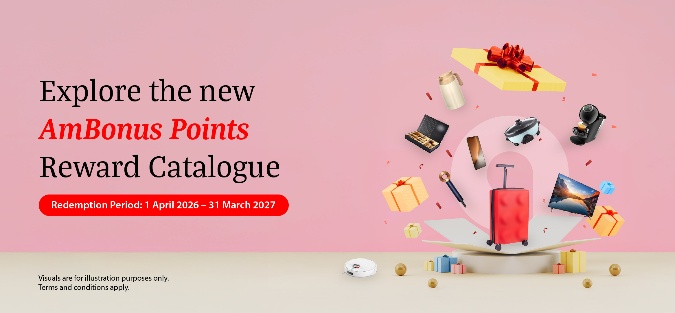 Select your desired gifts, vouchers or Air Miles and complete the e-redemption form at ambank.com.my/eForm