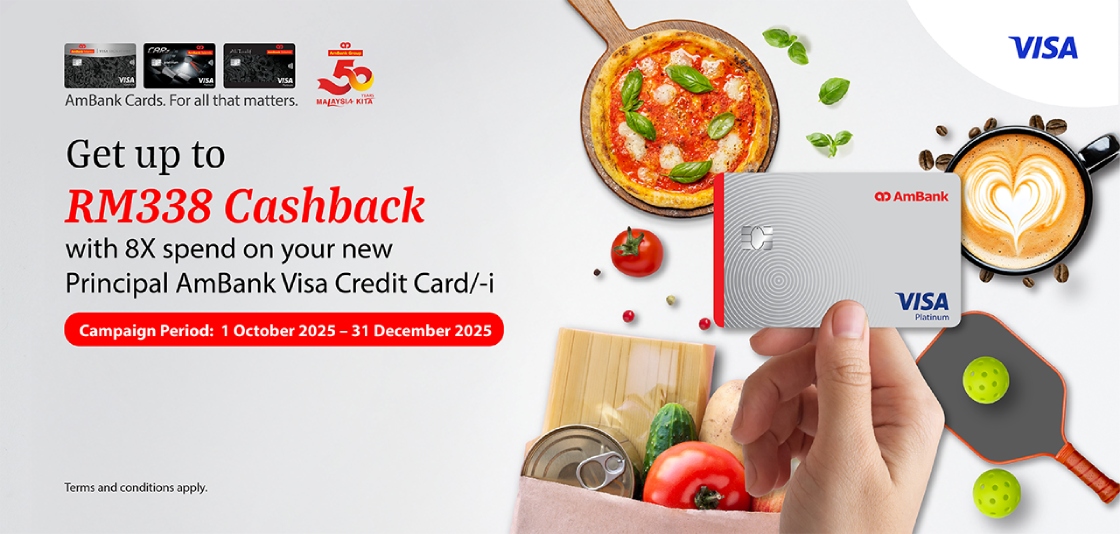 Get yourself a new Principal AmBank Visa Credit Card/-i! Just apply, activate and spend 8x within 60 calendar days from your card approval date to enjoy the Cashback.