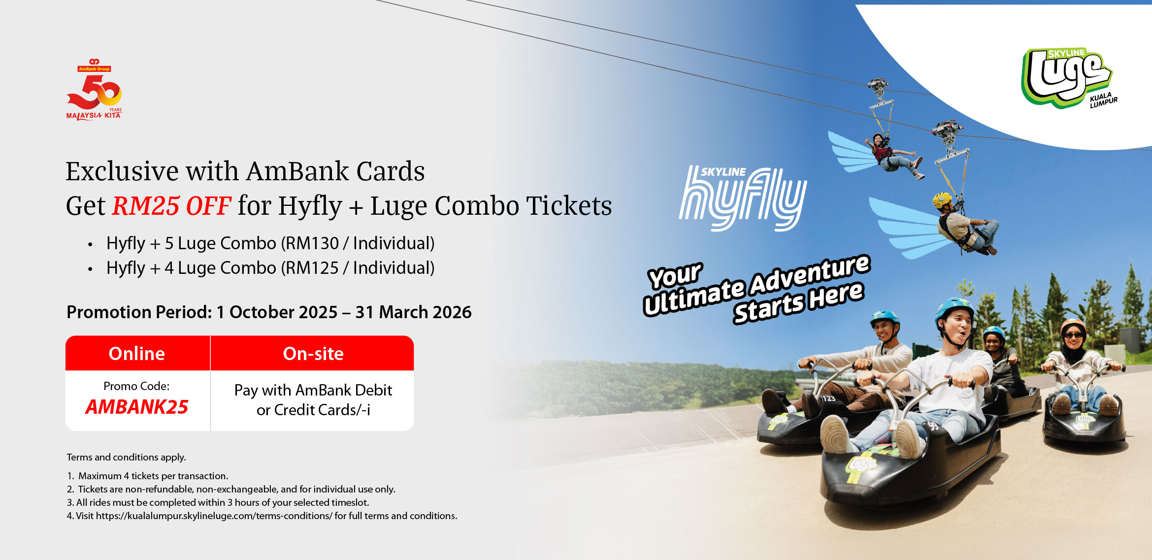 Get ready for an adrenaline-packed adventure at Skyline Luge Kuala Lumpur – now with RM25 OFF exclusively for AmBank cardholders!