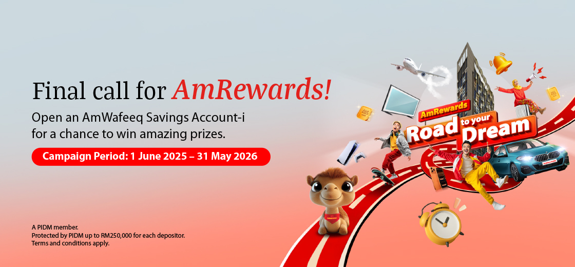 - AmSPB/AmSPP refers to AmBank SIGNATURE Priority Banking/AmBank SIGNATURE Priority Private. Customers must maintain a minimum of RM50,000 MAB in AmWafeeq SA-i to be eligible for Entries.