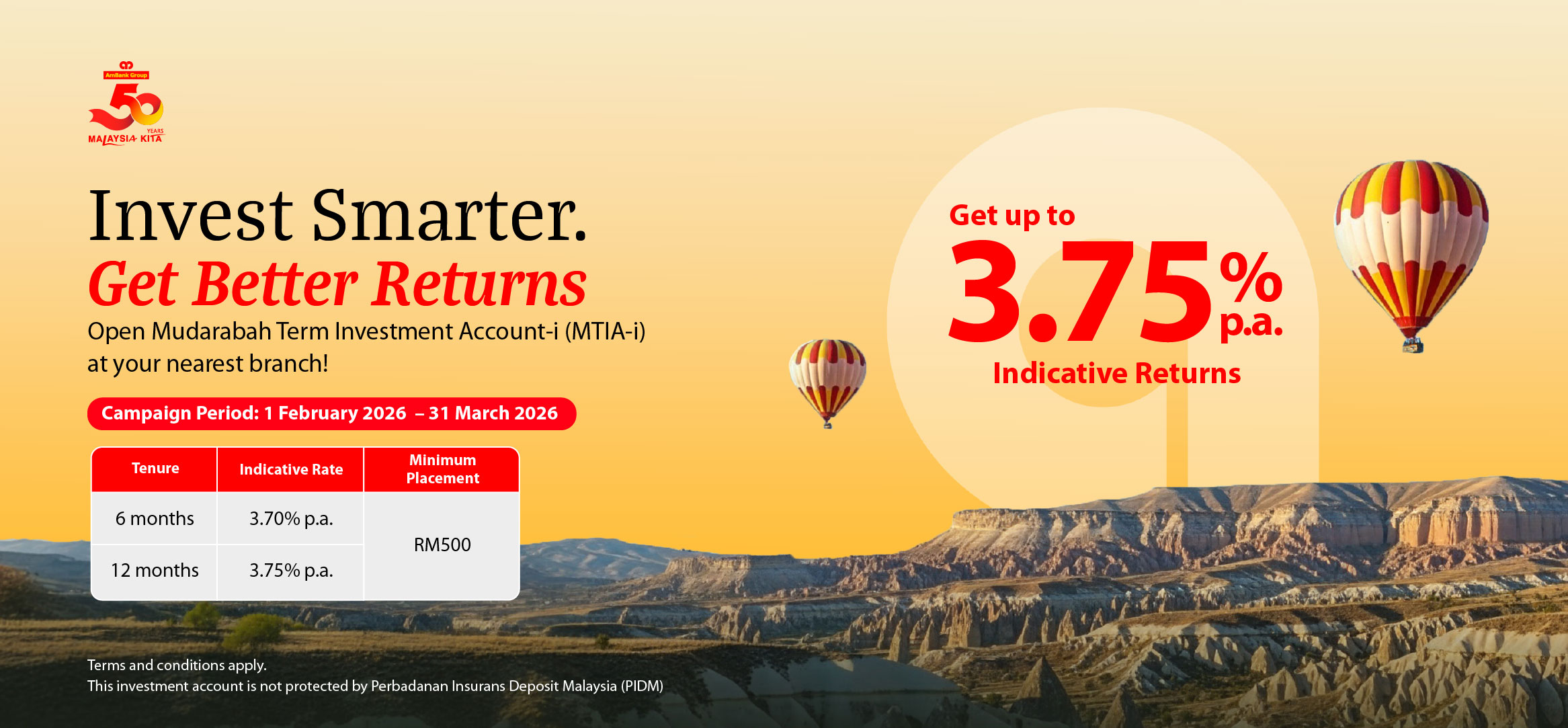 - The profit earned will be credited to the nominated current account/-i or savings account/-i (CASA/CASA-i) as selected by the Eligible Customer upon maturity of the MTIA-i.