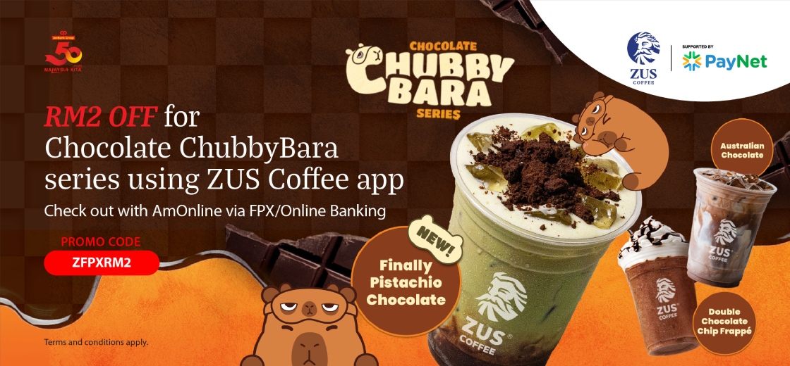Stay chill like a capybara with Chocolate ChubbyBara at ZUS Coffee! Enjoy RM2 OFF when you check out in the ZUS Coffee app with AmBank/AmBank Islamic via FPX/Online Banking. It’s simple, here is how to redeem RM2 OFF your next coffee break: